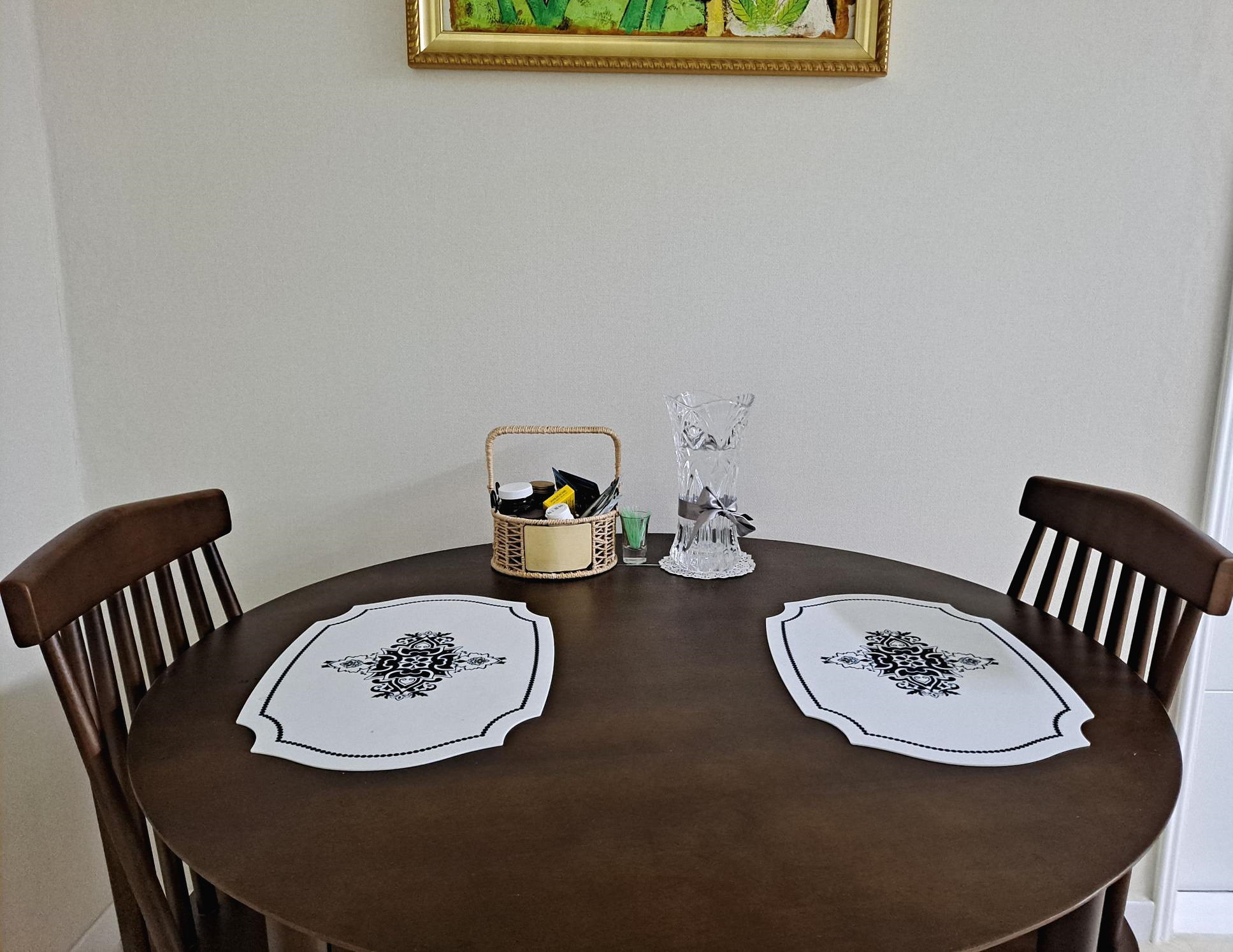 동그란 식탁과 테이블 매트도 사서 부쳤네요.
