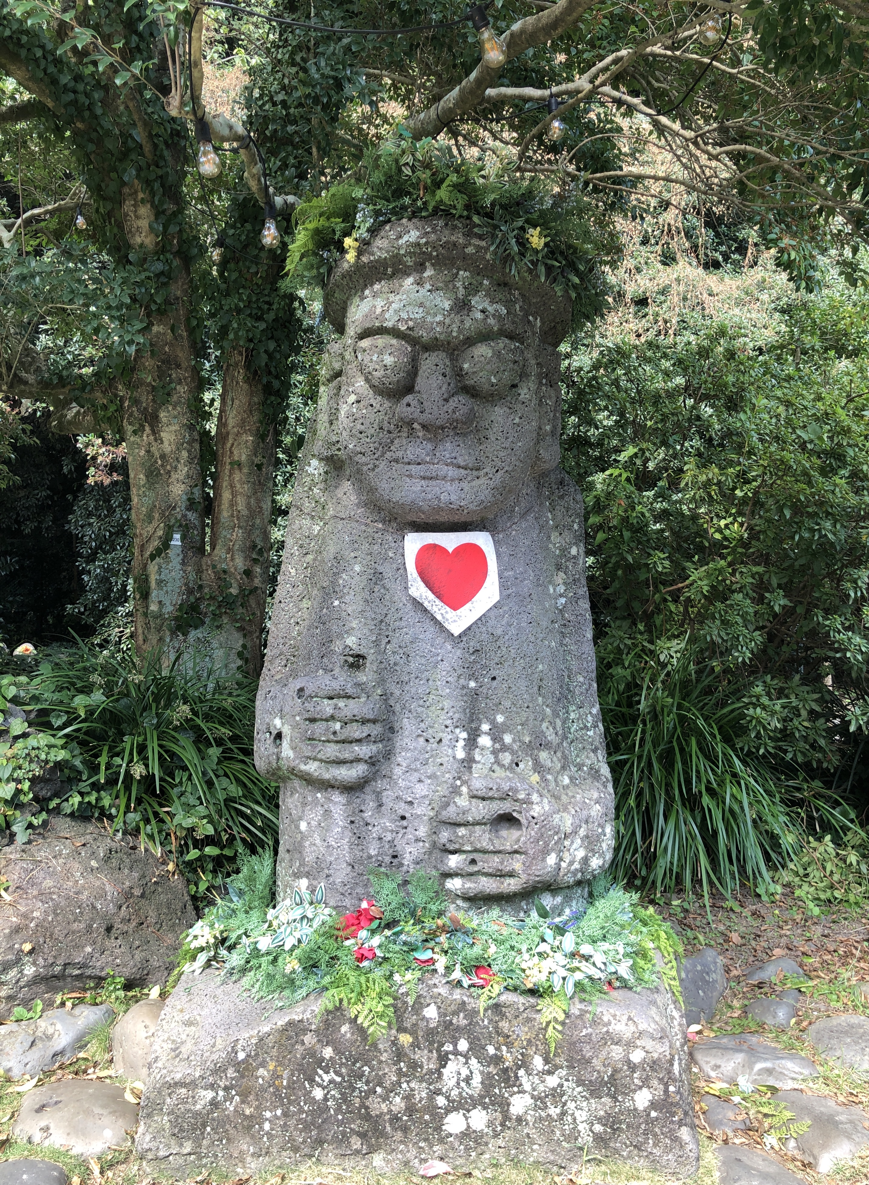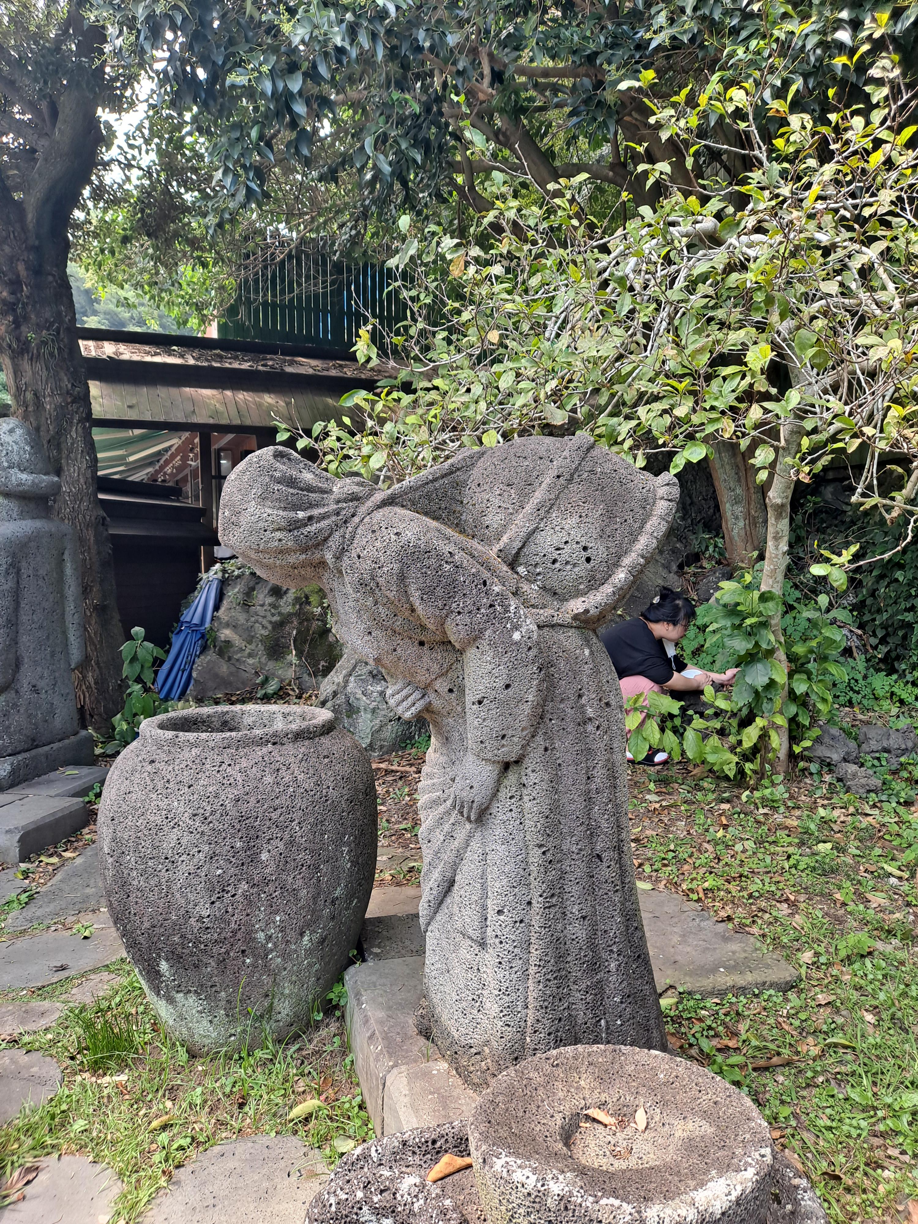 폭포 입구에 들어서니 화관 쓴 돌하르방님이