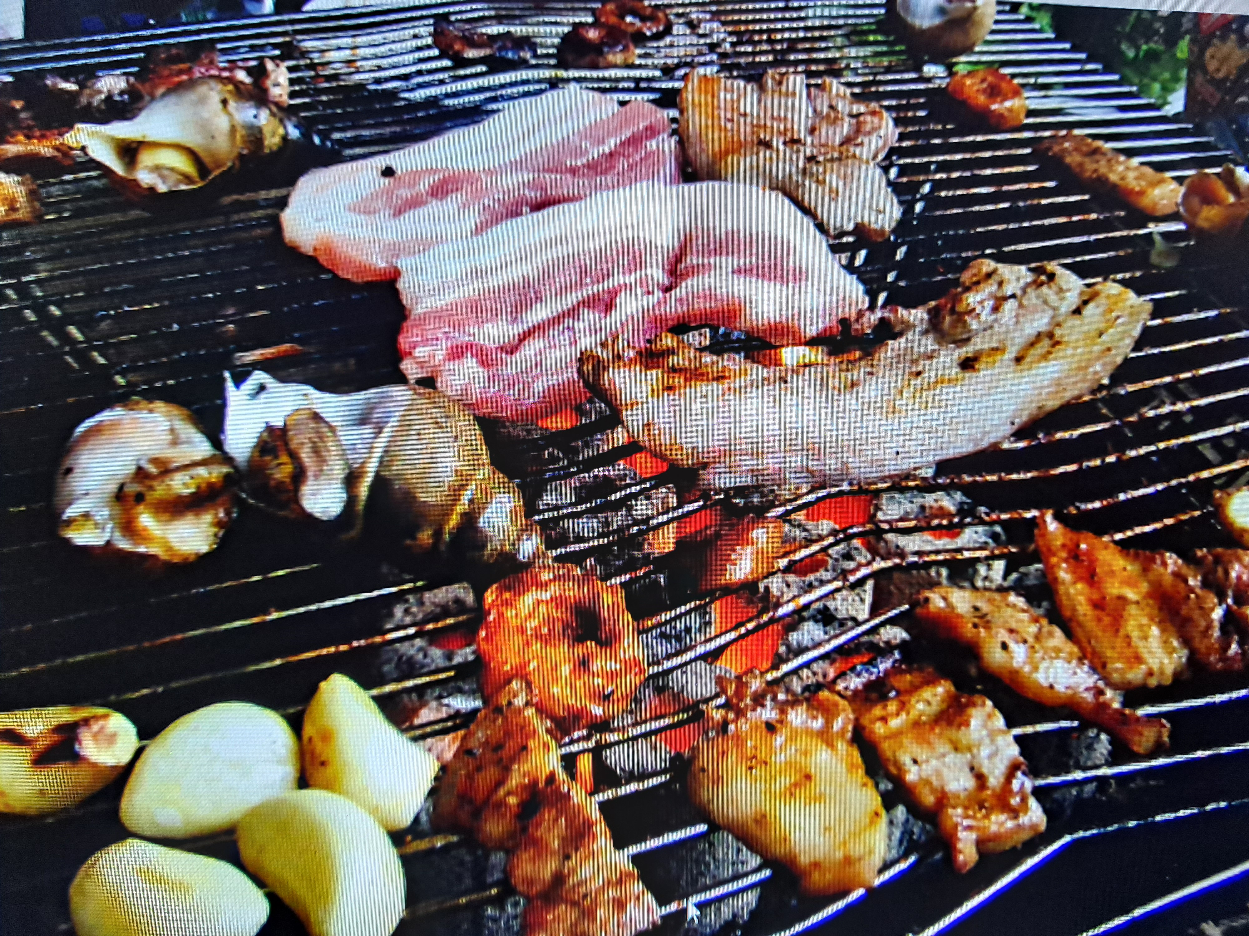 마치고 숙소 야외에 설치된 그릴에서 고기 구워서 한잔...