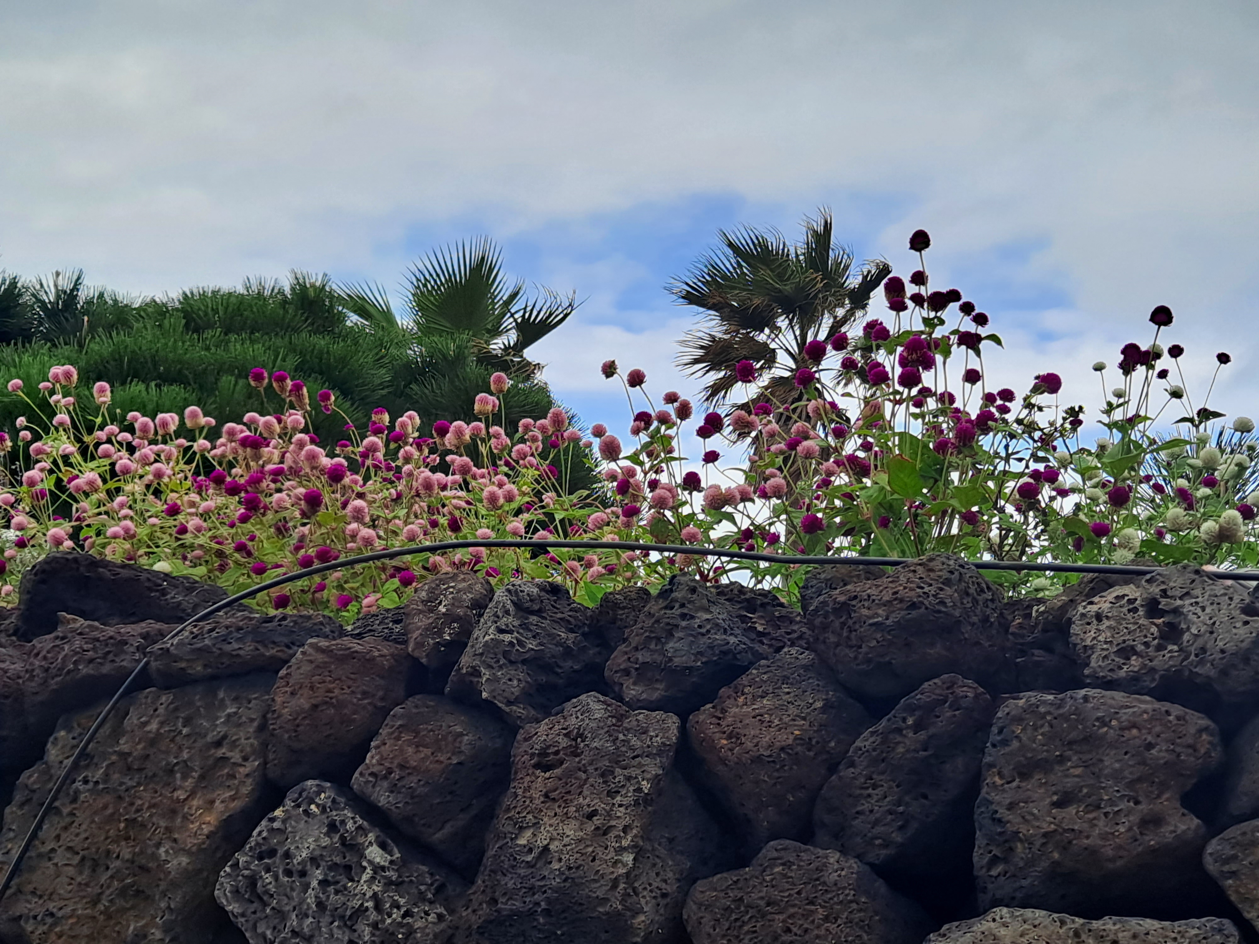 돌담위에 정겹게 달려 있는 수세미