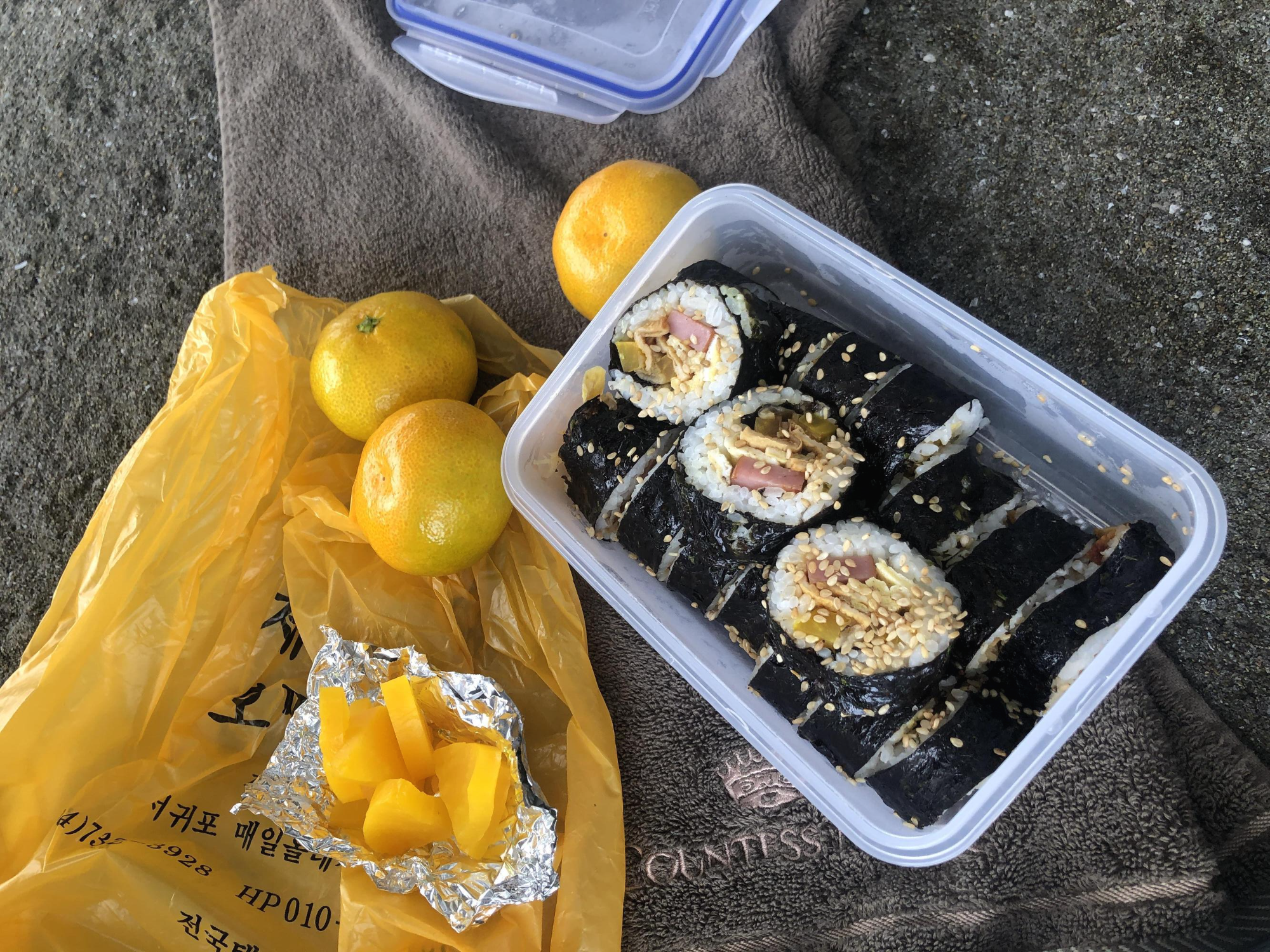 김밥 먹는데 목이 막혀 귤 까놓고 반찬처럼 같이 집어 먹으니 그것도 별미네...ㅎ ㅎ
