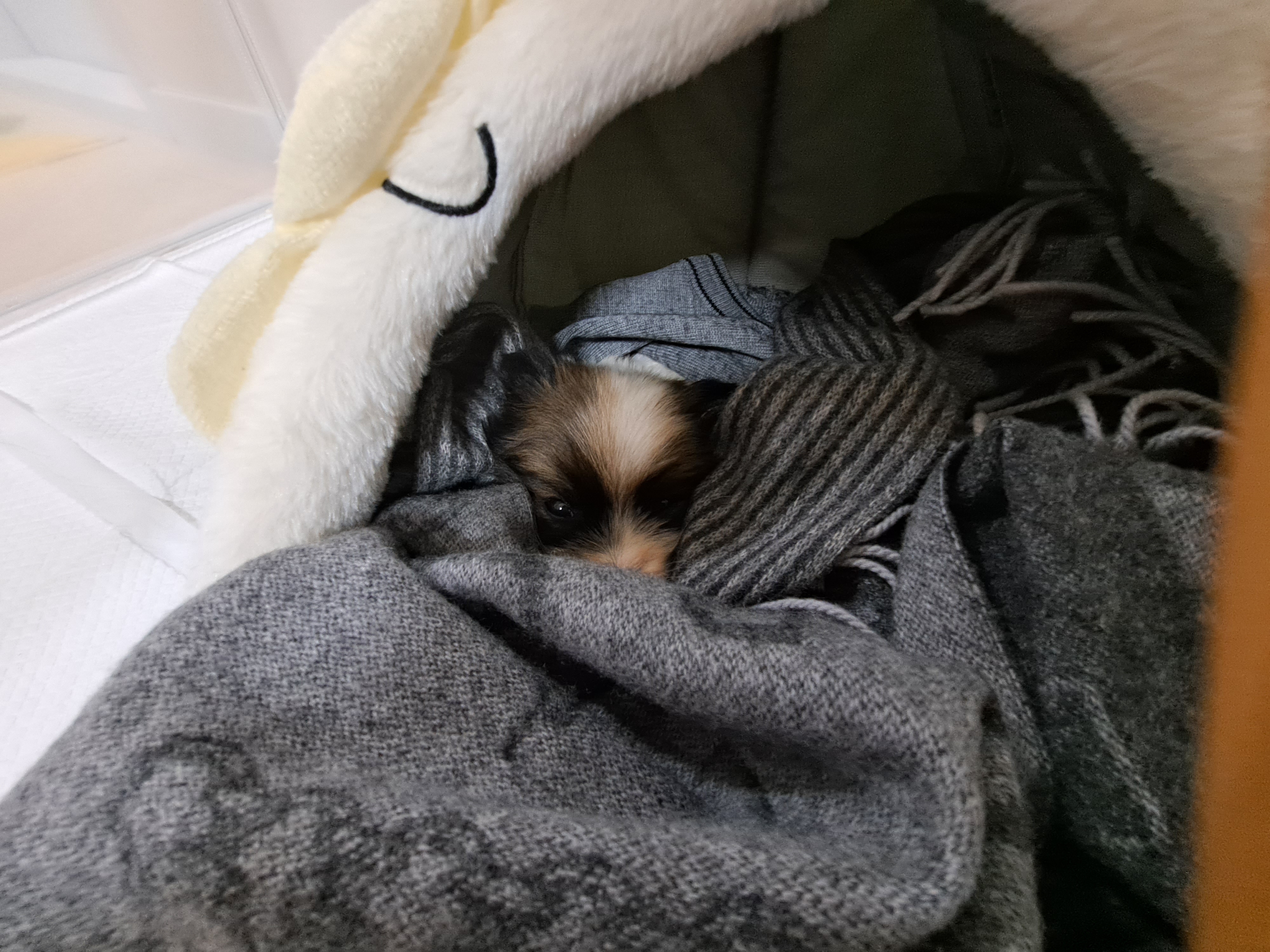 엄마 포근한 머플러로 감싸 주었더니 반짝이는 눈으로 응시한다.