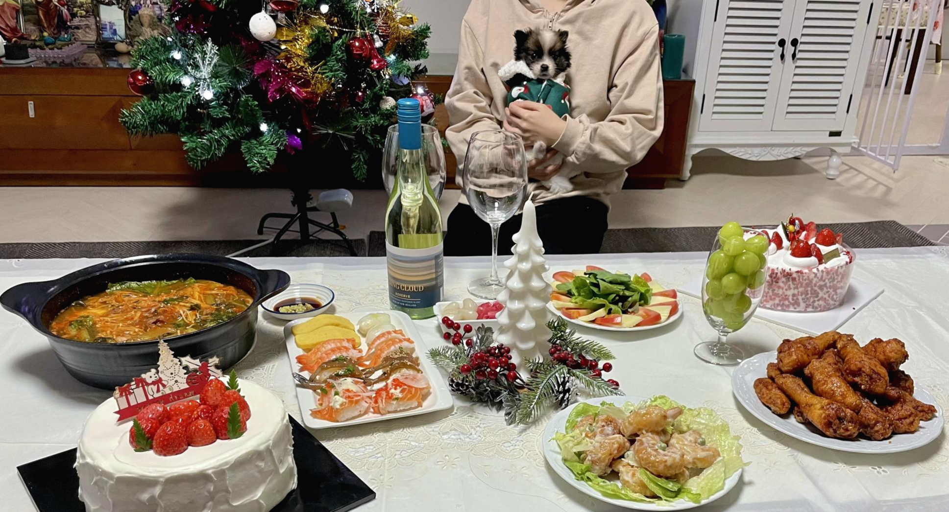 새 가족 맞이하여 성탄 파티 조촐하게 열다.