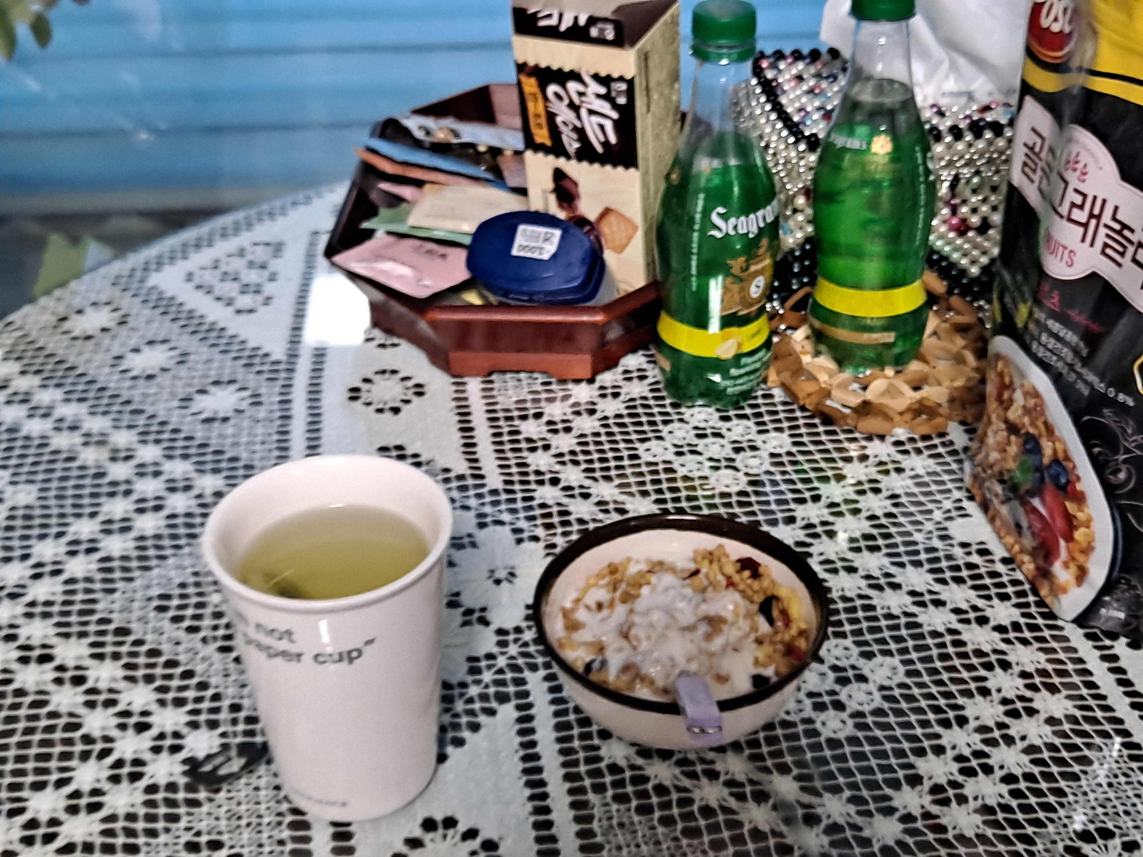 놀이기구에 관심 보이는 동안 간단한 아침식사로 후다닥...
