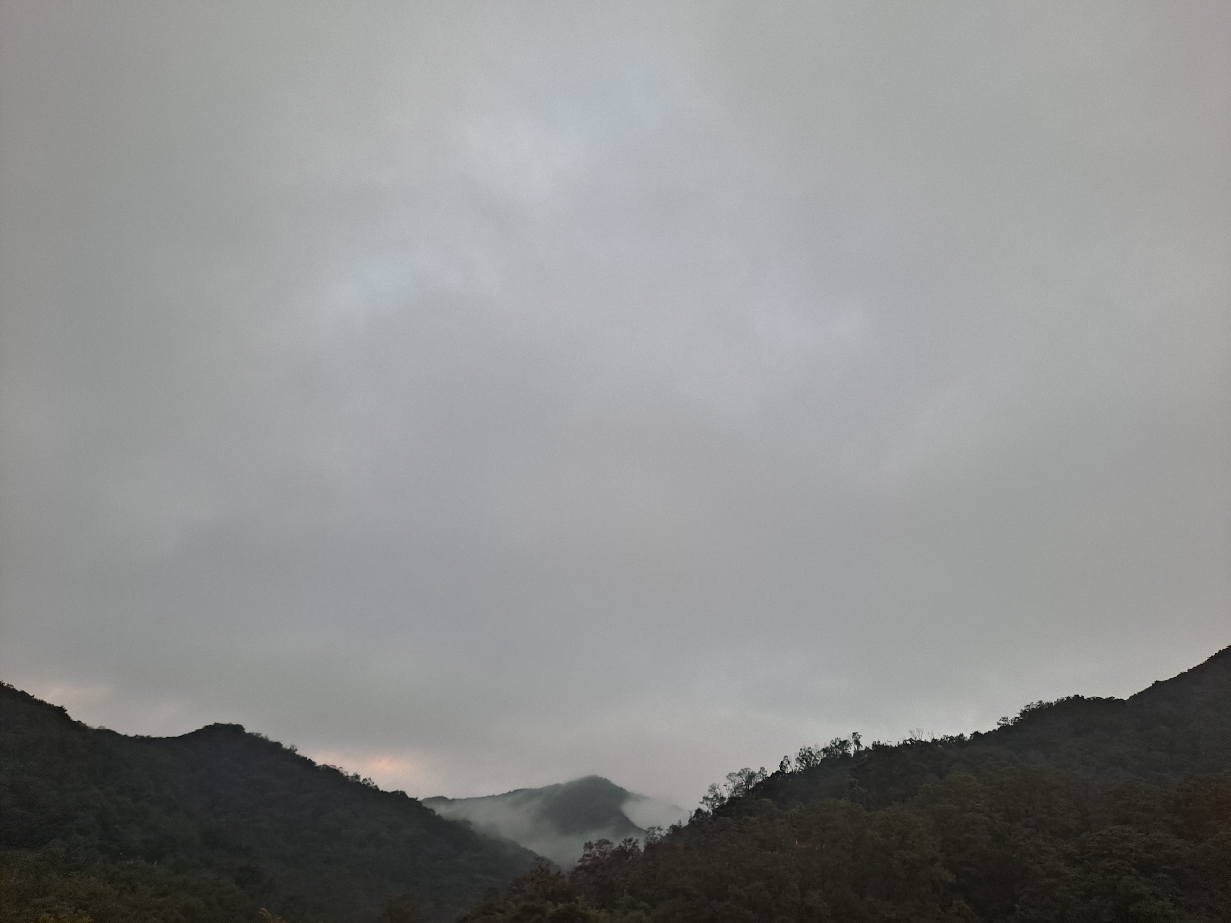운무에 휘감긴 먼산을 바라보며