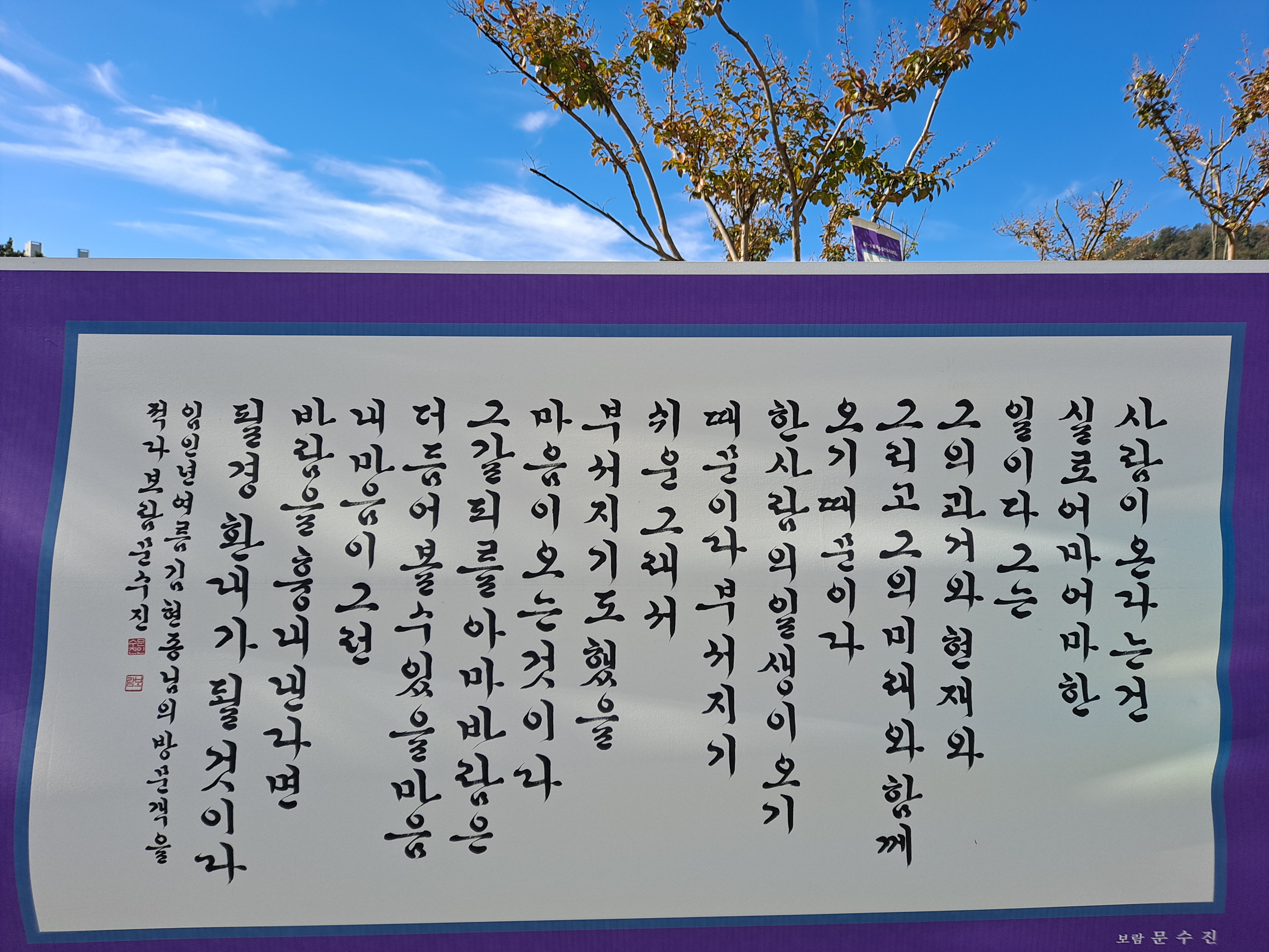 공원에 걸린 서예협회지부 출품작