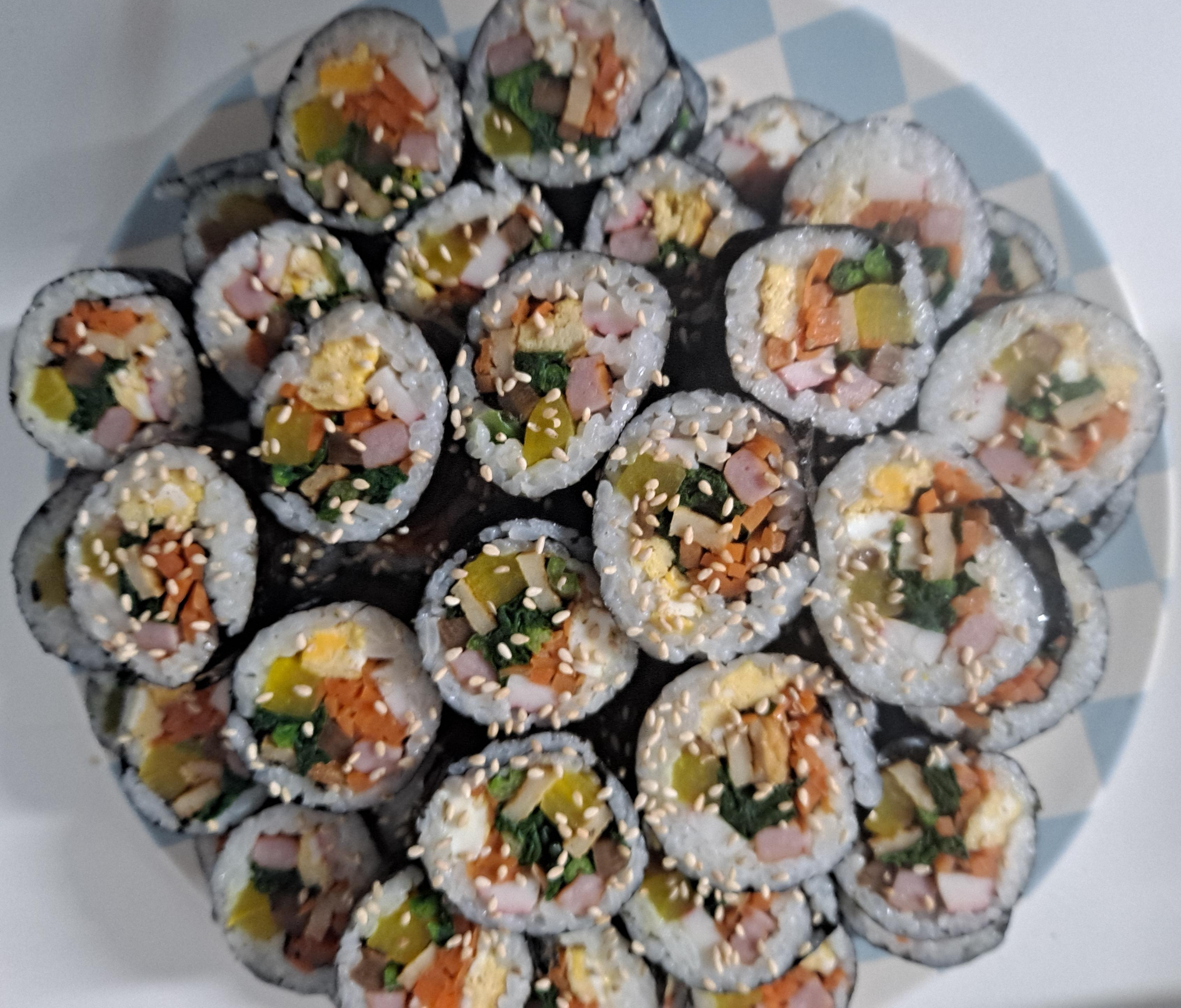 그냥 올려다 후회할 것 같아서 김밥 10줄 말아서 두었다.