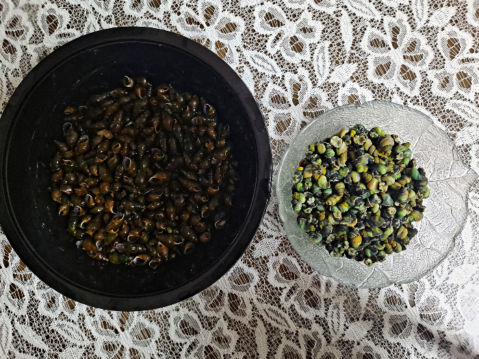애들아빠랑 산채 비빔밥으로 요기 때우고 오는길에 냇가에서 다슬기도 잡았다.