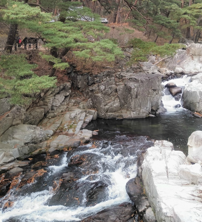 흐르는 맑은 물에 손을 담그며