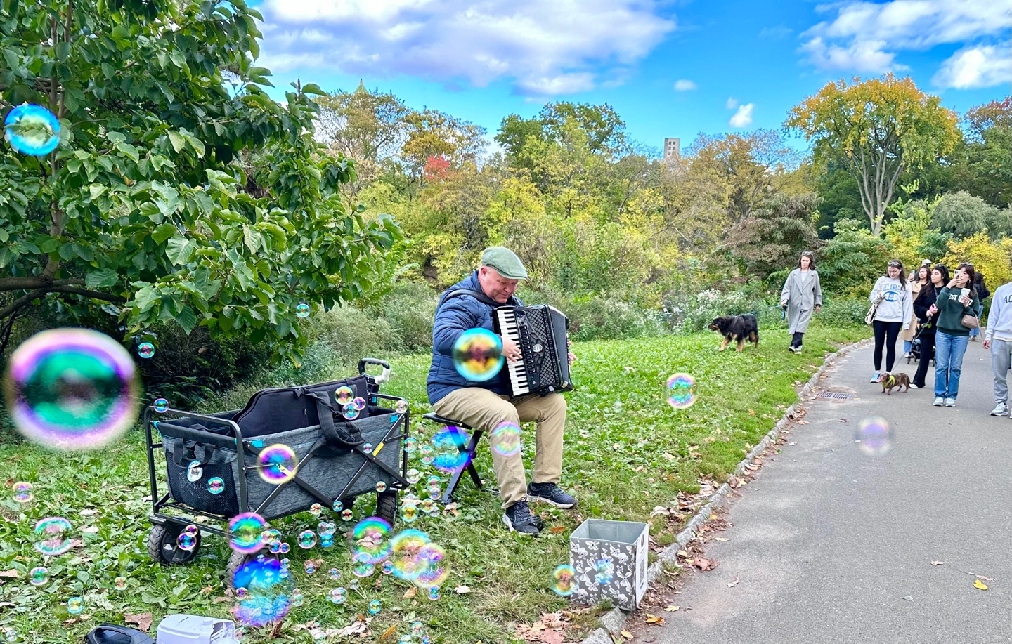 비누방울 흘리며 아름다운 노래 연주하는 할아버지 모습이 공원 풍경과 넘나 잘 어울렸다.